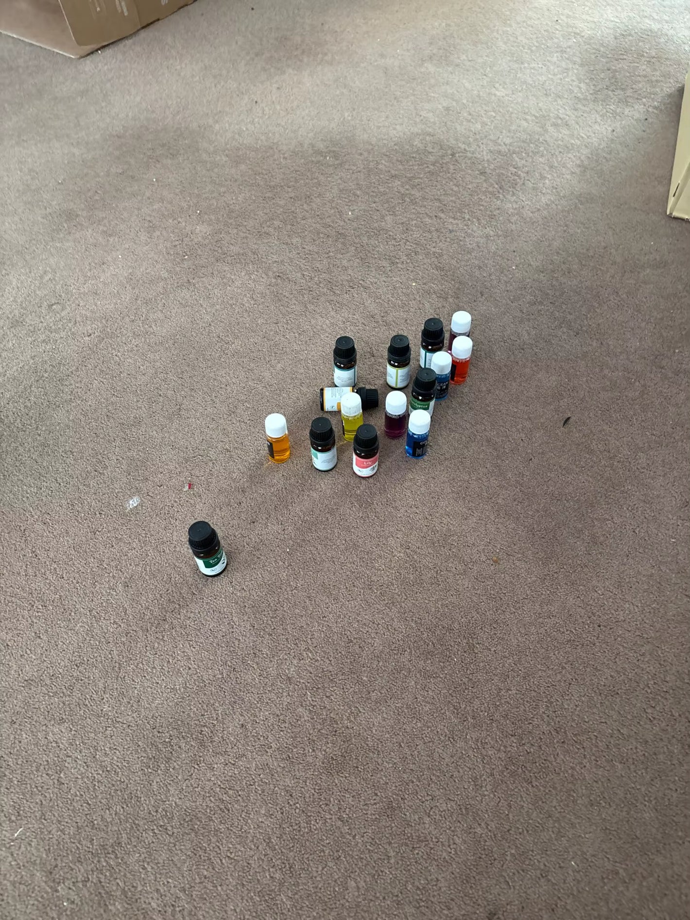 Agrega de 5 a 10 gotas de aromatizante por cada 100 g de arena, según la intensidad de fragancia que desees.