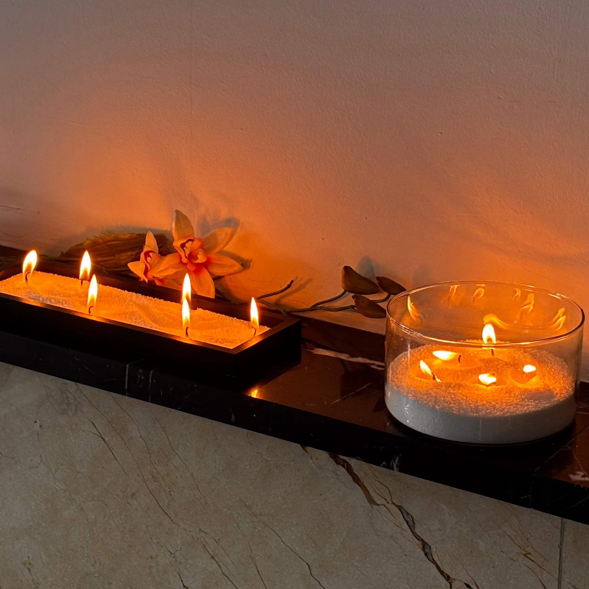 La duración depende de la cantidad de arena y el tamaño de la mecha. Normalmente puede durar entre 6 y 12 horas de combustión continua.